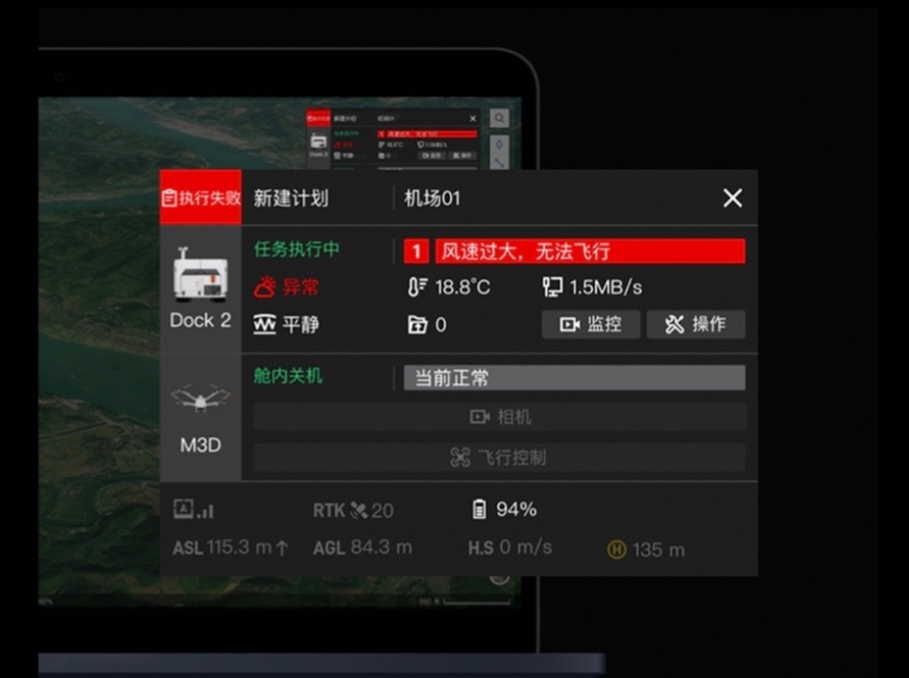 機(jī)場(chǎng)集成雨量計(jì)、風(fēng)速計(jì)、溫度計(jì),可實(shí)時(shí)感知天氣變化,通過司空 2 及時(shí)告警或中止飛行任務(wù)。